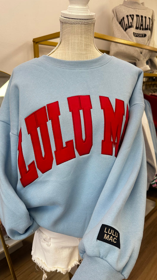 LULU MAC Light Blue & Red Stitched Embroidered Sweatshirt
