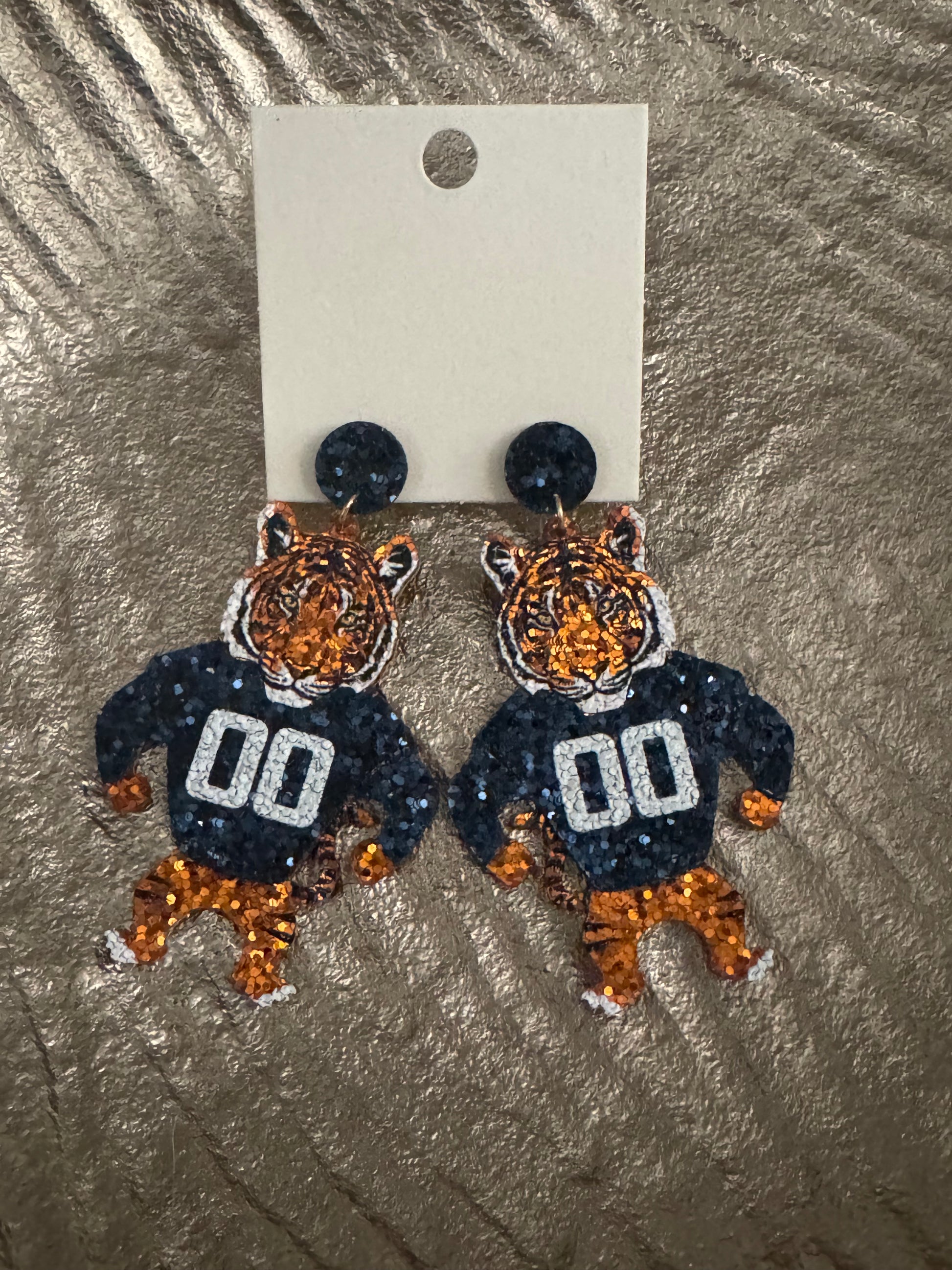 Tiger with navy jersey sequin Earring