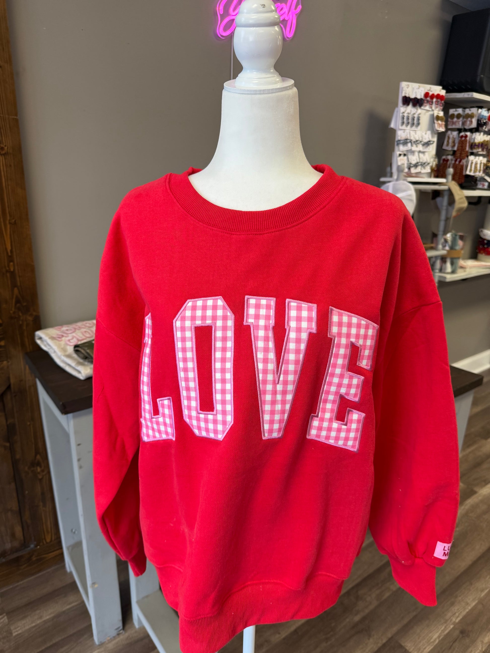 LULU MAC LOVE CHECKERED RED EMBROIDERED SWEATSHIRT
