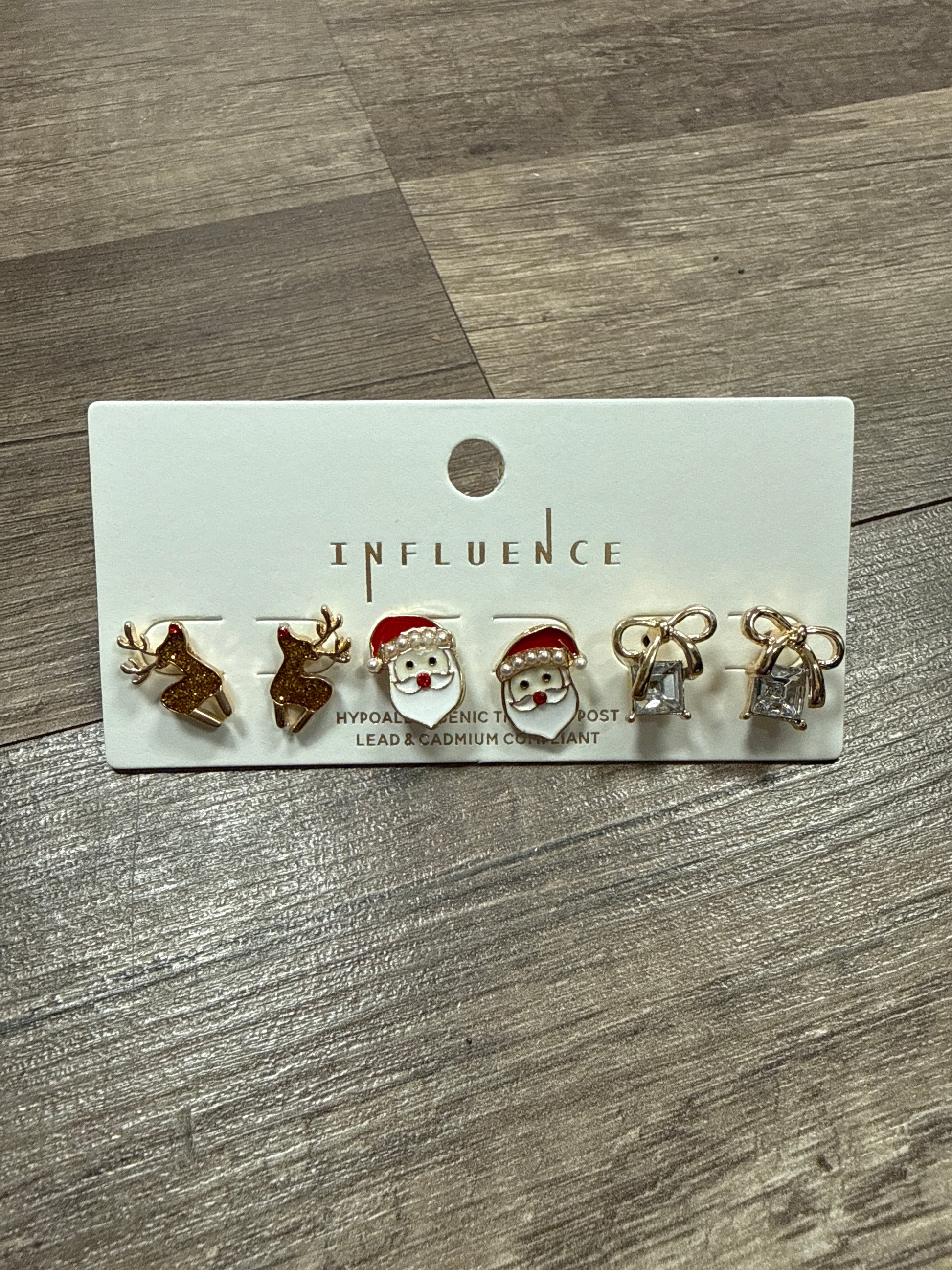 Christmas Trio Studs( Reindeer, Santa, present bow)