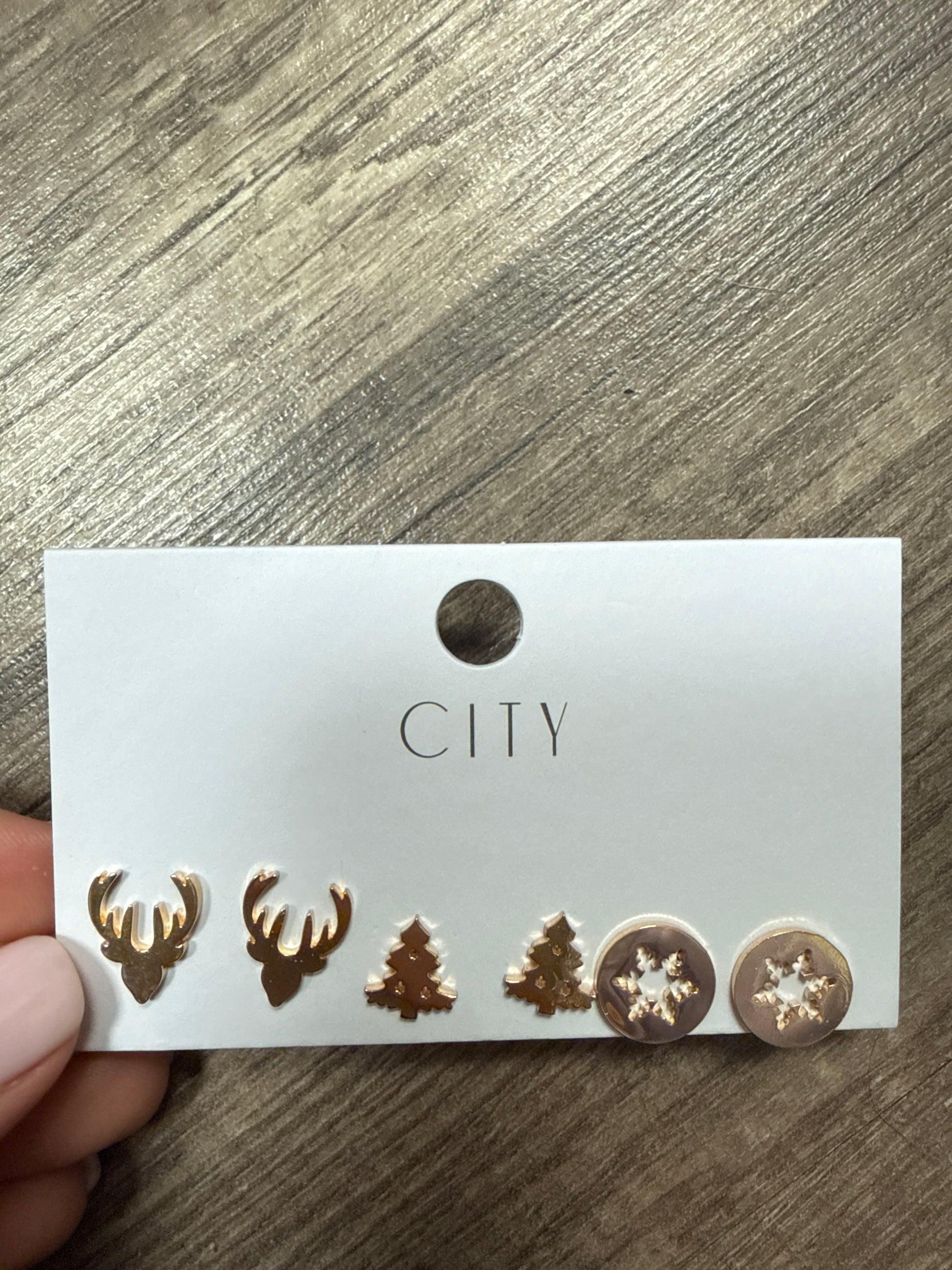 Gold Christmas Trio Studs (antlers, trees, and snowflakes)
